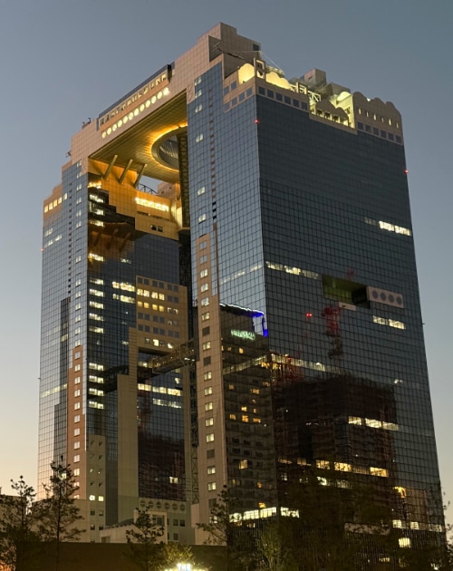 With dinner fueling your second wind, it’s time for one last experience. If you stayed in the north, linger in Umeda—wander through the futuristic architecture of the Sky Building, sip a drink in the nearby Shin-Umeda Shokudogai retro food alleys, and watch the city hum into the night.