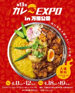 Curry EXPO returns to Expo ’70 Commemorative Park this April for its 13th edition, spreading across two weekends April 11 & 12, then again on the 18th and 19th. Curry Expo turns the park’s Festival Plaza into one of Kansai’s most appealing spring food destinations. The event brings together Osaka-born spice curry alongside Indian, European, and soup curry styles, giving visitors a broad view of how wide the curry category has become in Japan. Both the official event site and the park describe it as one of western Japan’s largest curry events.