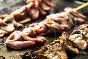 From 16:00, food and drink stalls begin serving festival fare across the Great Lawn — grilled yakitori skewers, karaage, sausages, sweet crepes, and hot drinks suited to the cooling April air. Beer, soft drinks, and casual street-style plates replace bento blankets, and visitors linger between vendor tents as the light shifts toward dusk.