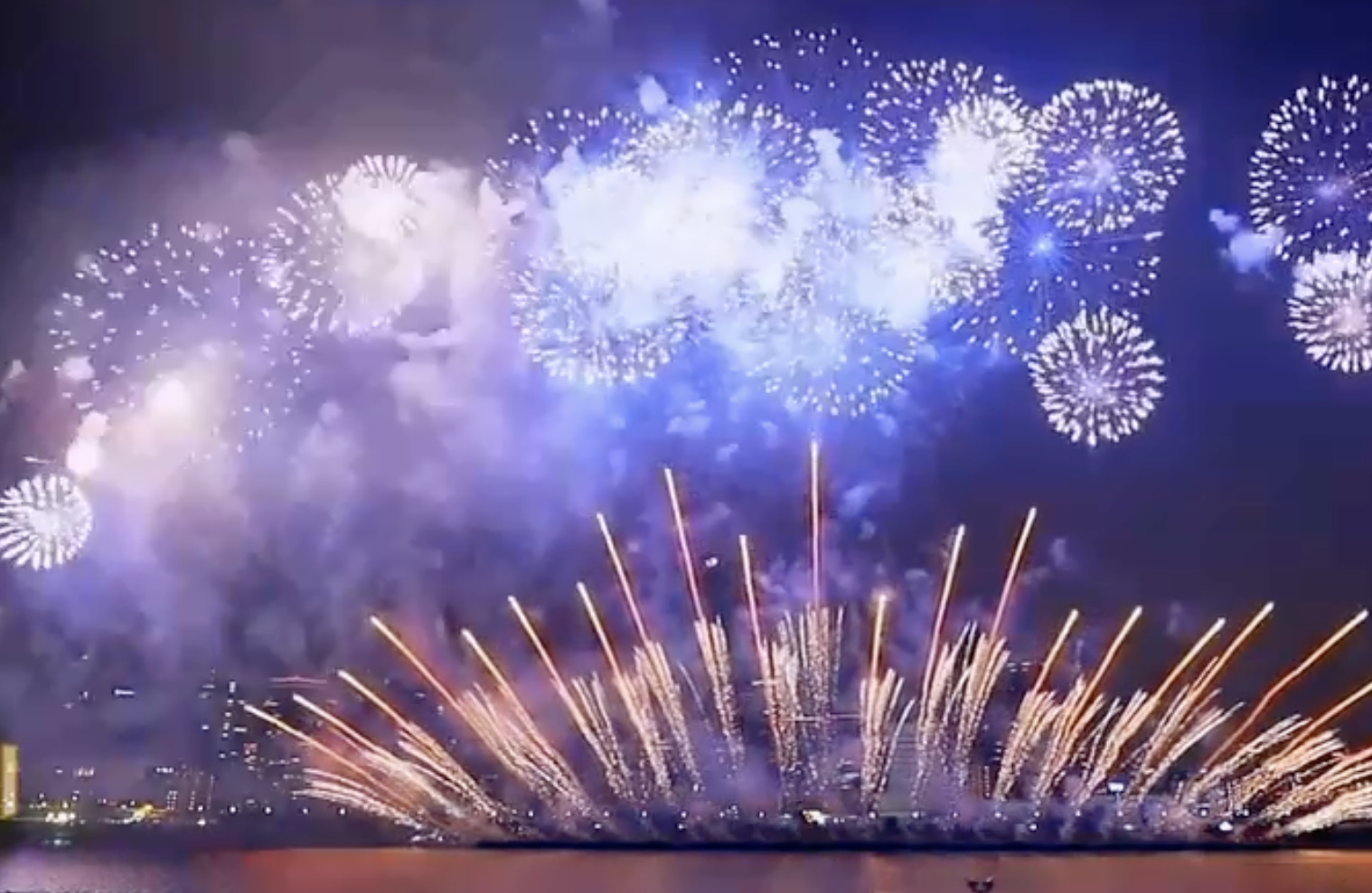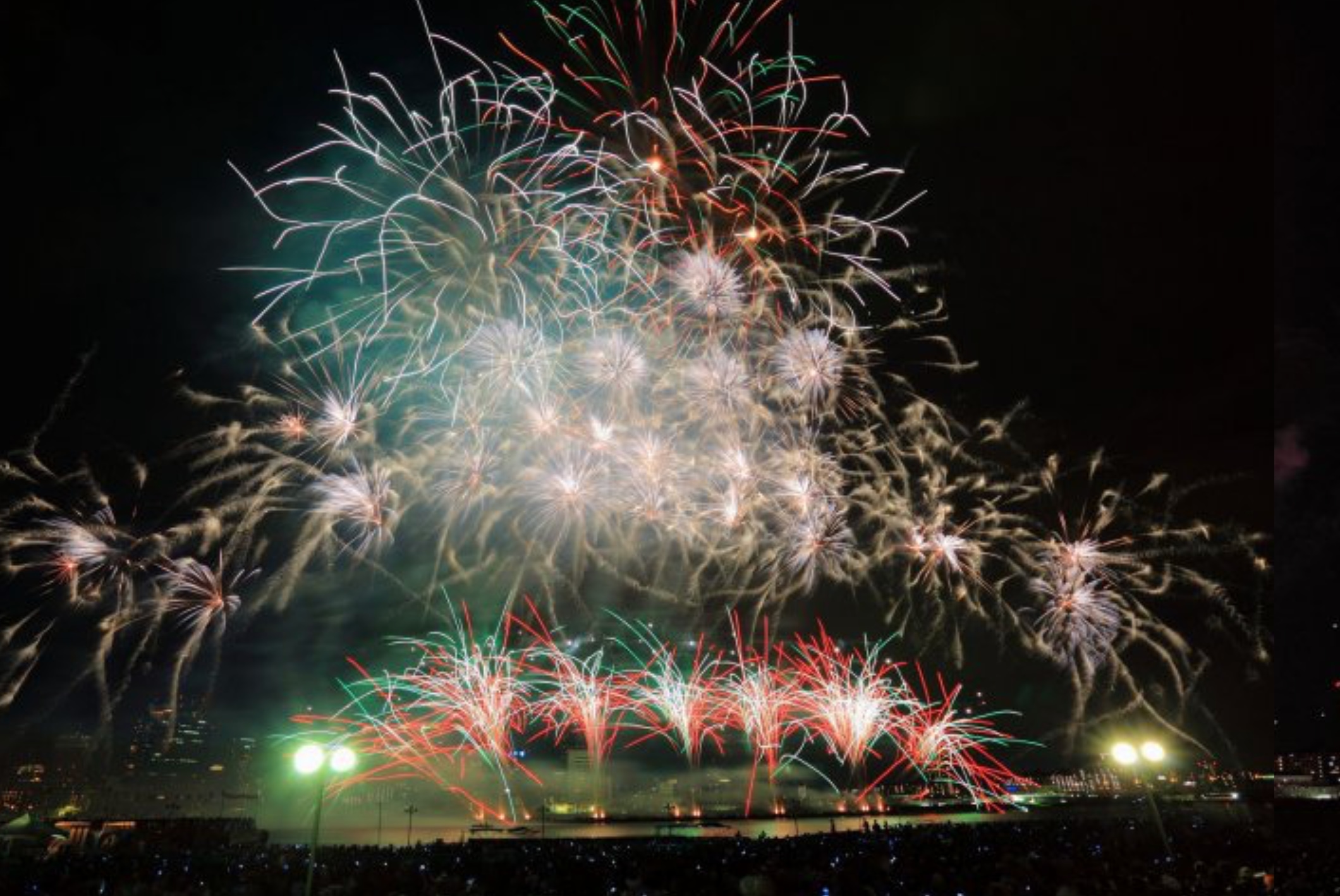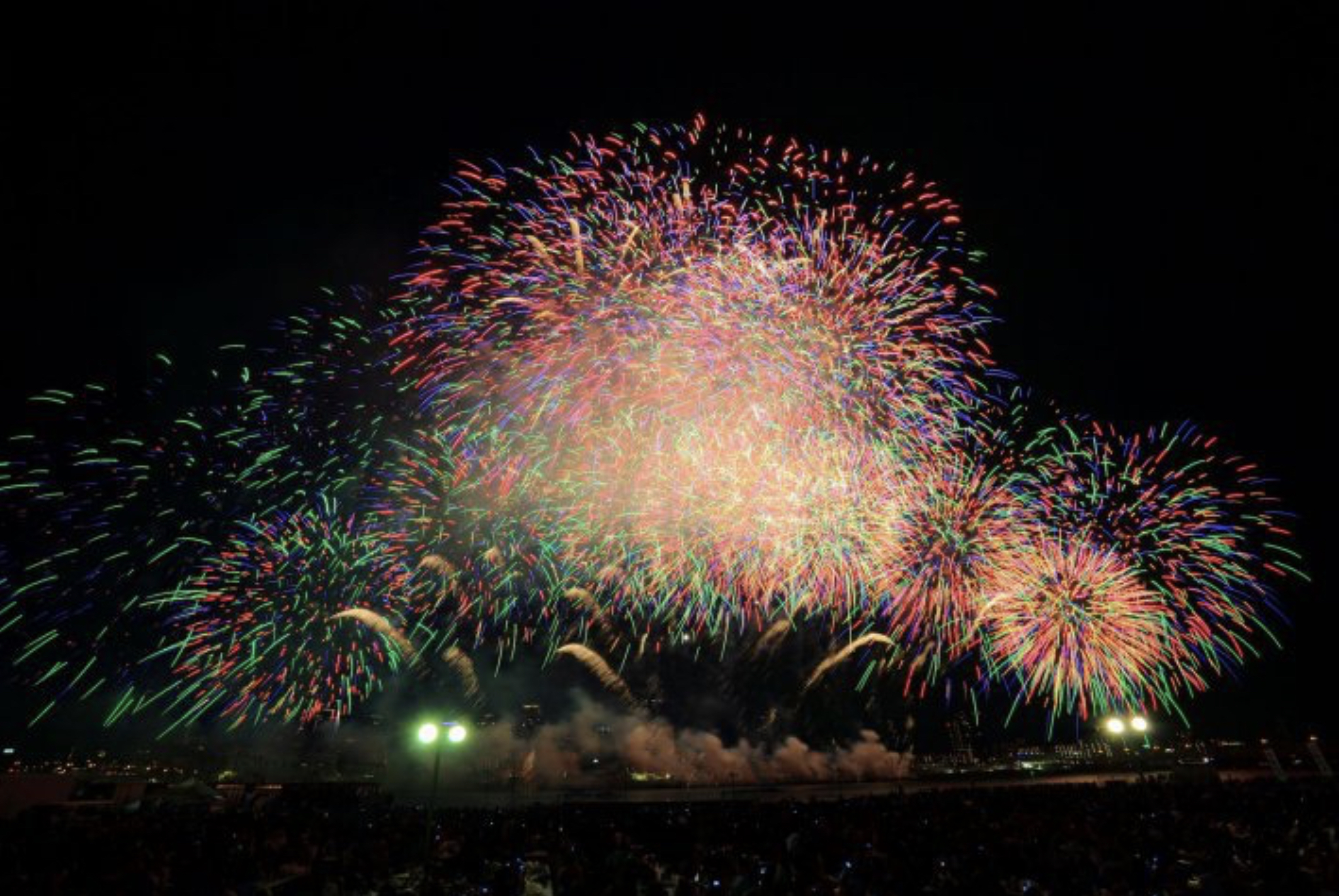Osaka’s biggest fireworks festival: ~500,000 spectators, ~20,000 shells.