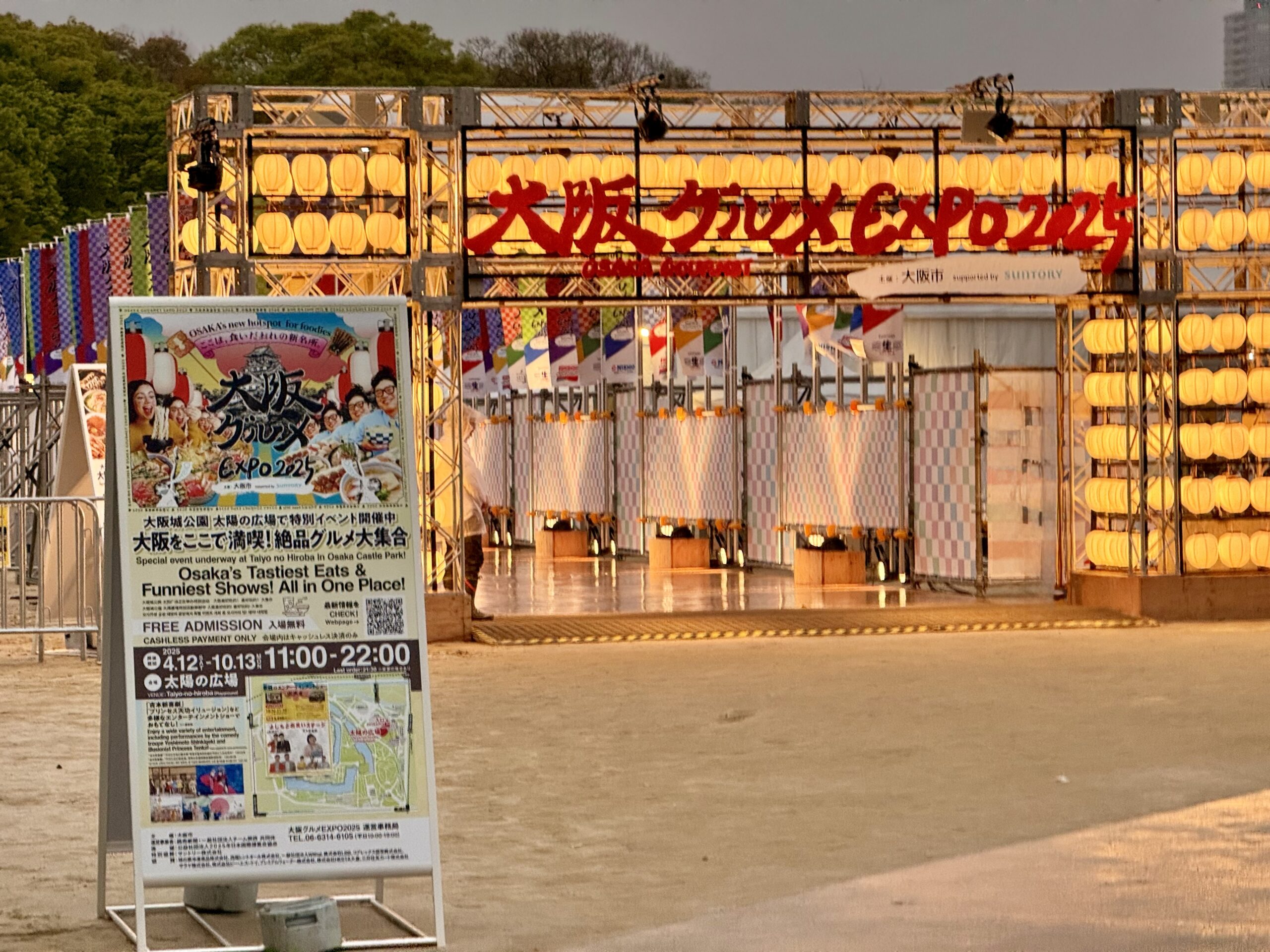 From April 12 to October 13, 2025, the spacious Taiyō no Hiroba within Osaka Castle Park becomes home to the Osaka Gourmet EXPO—a six-month-long celebration of food, drink, and entertainment that runs daily from 11:00 to 22:00.