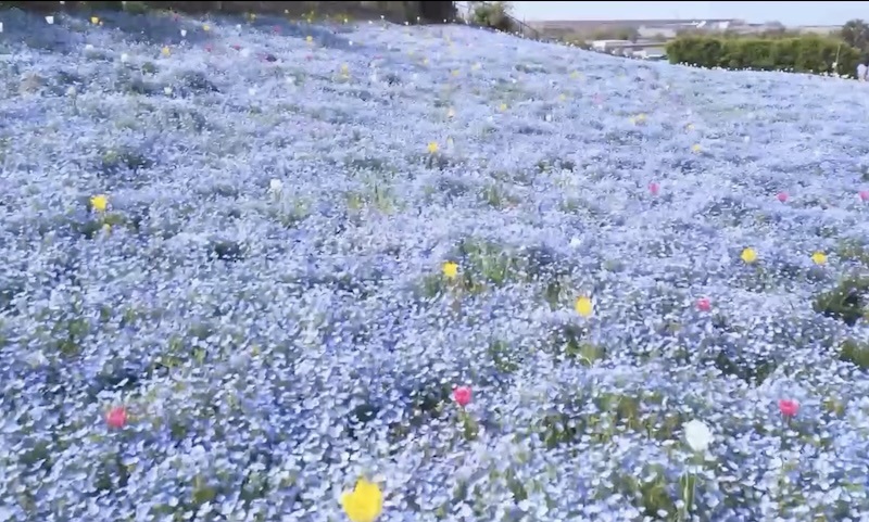 A million nemophila flowers bloom along Osaka Bay, creating one of the city’s most distinctive late-spring landscapes.